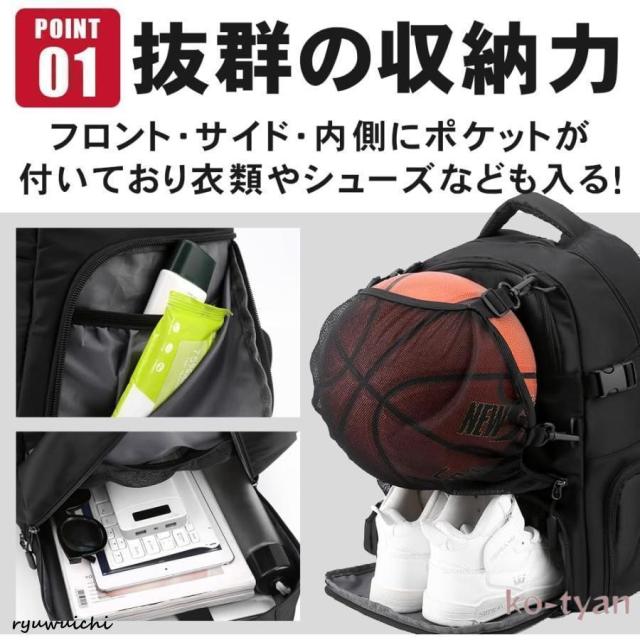 【こだわり設計】底部にある隔離換気された靴コンパートメントは、靴を他のアイテムから分離します。バスケットボールリュックには、自由に吊るすことがで