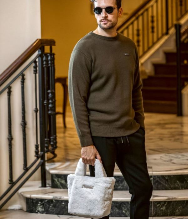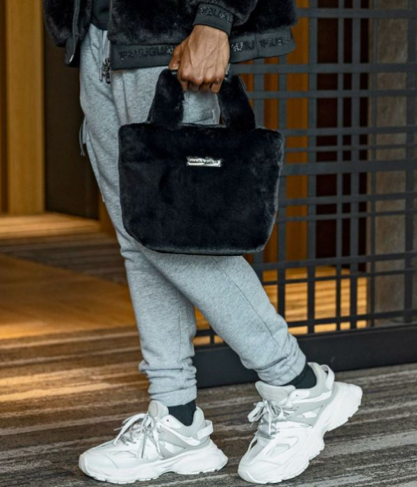 フロントにシルバープレートでブランドロゴを差し込んだミニトート。高級感のある輝きで大人のカジュアルスタイルを格上げ。