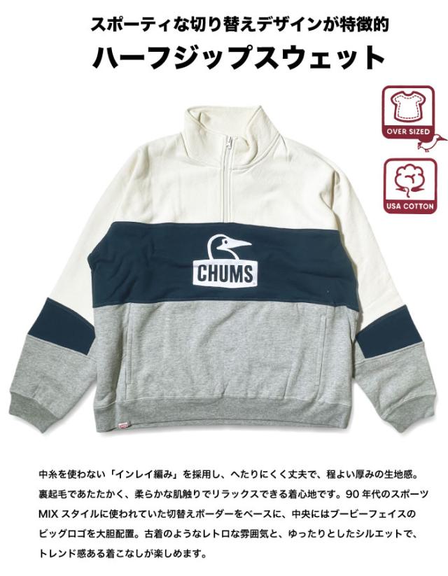 CHUMS チャムス 裏起毛 スウェット トレーナー プルオーバー 長袖 カーンズパネルハーフジップトップ オーバーサイズ ゆったり アウトドア スポーティ メンズ レディース 保温 あったか CH00-1509