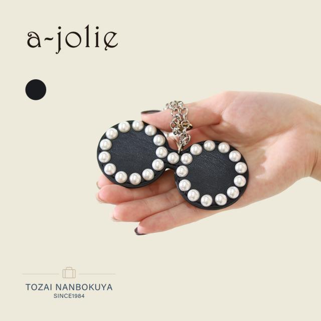 a-jolieらしい、丸いサングラスにぐるっと一周あしらわれたパールが印象的。持つだけで視線を集める、大人かわいいアクセントアイテムです。