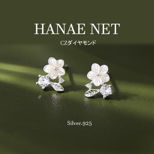 花.whiteフラワーモチーフ.CZダイヤモンドのスタ