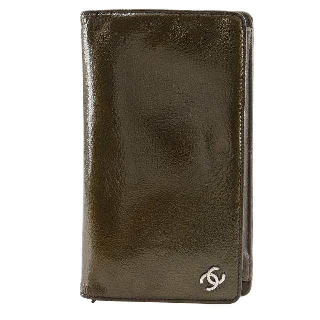 CHANEL シャネル ココマーク パテントレザー ブロンズ 長財布 レディース 【中古】