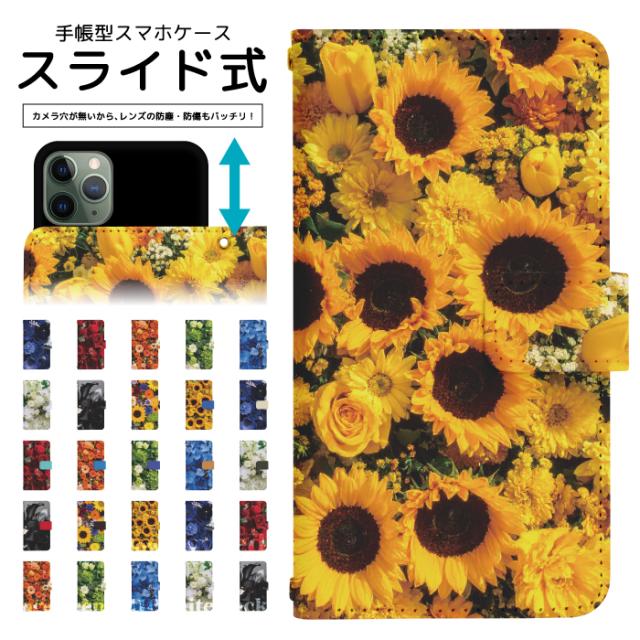 スマホケース 手帳型 全機種対応 スライド式 手帳型ケース iPhone 16e SE3 13 13mini 12 12Pro 12mini SE2 ケース アイフォン スマホカバー プリント 手帳 カバー スマホ 携帯ケース 携帯カバー 花束 dslide987