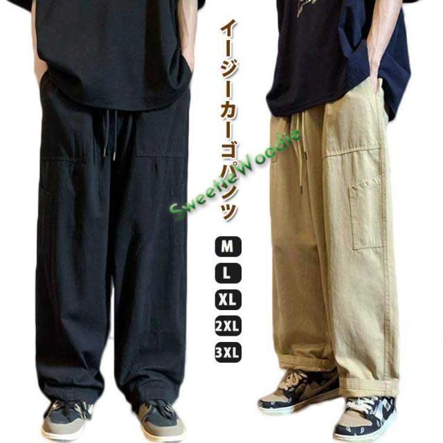 カーゴパンツ ワークパンツ メンズ ワイドパンツ イージーパンツ ウエストゴム ルーズ ミリタリーパンツ カーゴパンツ ミリタリー リラックス カジュ