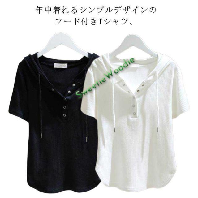| 年中着れるシンプルデザインのフード付きTシャツ。 デザイン性とこだわりのパーカースタイルのプルオーバートップス。 フード付き、半袖で、どんなシーンにも対応。 | |