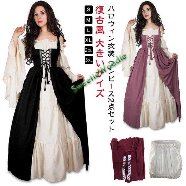 コスプレ レディース 復古風 ハロウィン ワンピース 2点セット 中世ヨーロッパ ワンピース 中世 ヨーロッパ風 西洋 大人 ハロウィン衣装 コスチュ