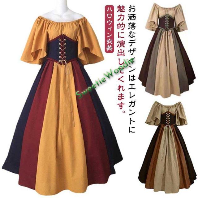 洋装 半袖 王族服 ワンピース 中世ヨーロッパ レディース 衣装 ベルスリーブ 服装 お姫様 ドレス 貴族 ステージ衣装 学園祭 豪華 ワンピース ヨ