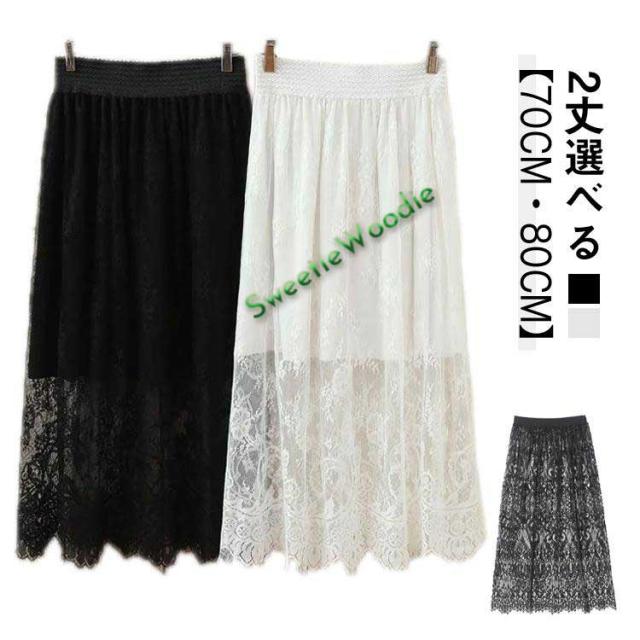 アンダースカート 春夏 裾レース ブラック 70cm 40代 インナー 80cm 体型カバー 透けない スカート ゆったり レース 白 見せる 重ね着