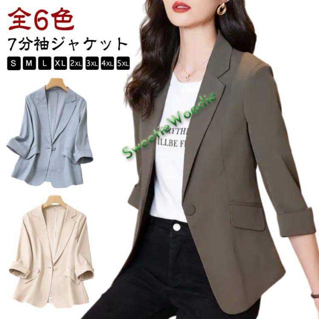 全6色 春夏 カジュアル レディース 綿麻調 ジャケット スーツ 薄手 UVカット サマージャケット テーラードジャケット オフィス 通勤 秋 七分袖