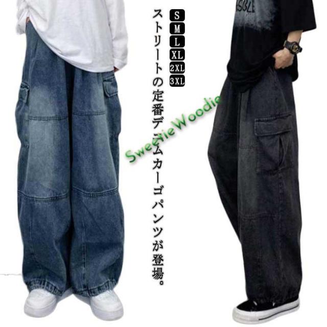 ジーンズ デニムパンツ メンズ 大きいサイズ ゆったり アメカジ 極太 ヒップホップ カーゴ パンツ ボトムス 大き目 ダンス衣装 メンズ ストリート