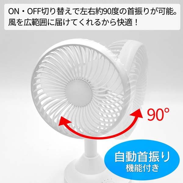 自動で首振り可能! 広範囲に送風! ポータブルで どこでも使えるコンパクトファン♪ |