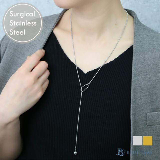 ラリエットネックレス ボール 玉 ロング サージカルステンレス 金属アレルギー対応 k18コーティング ネックレス シルバー ゴールド 大ぶり カジュアル キレイめ