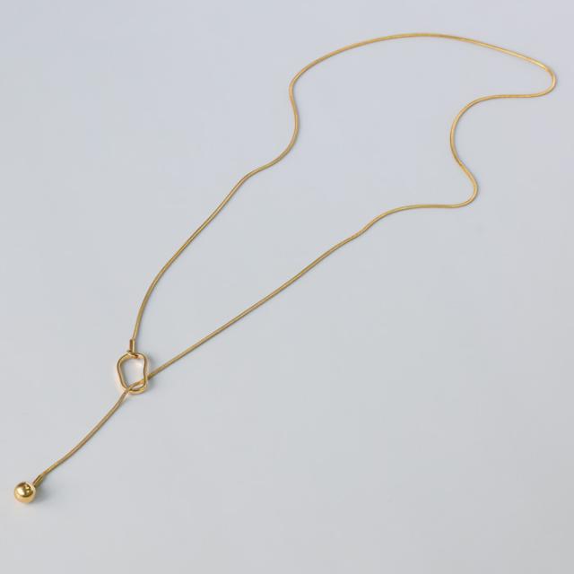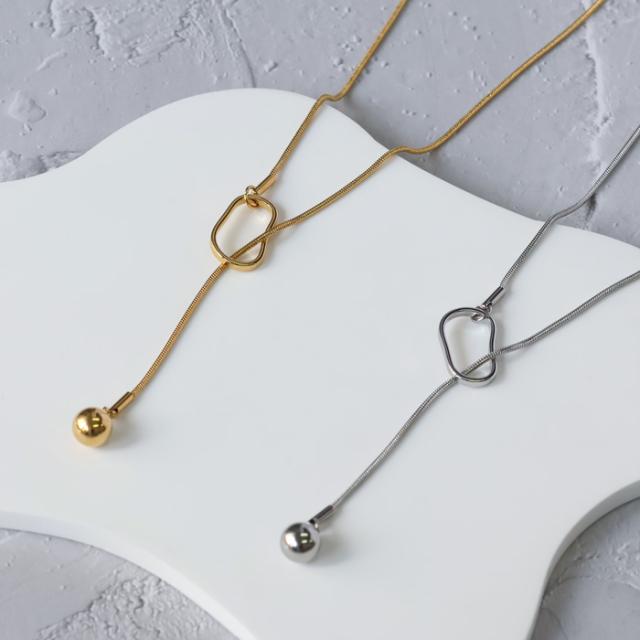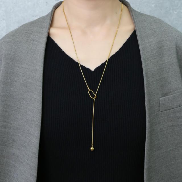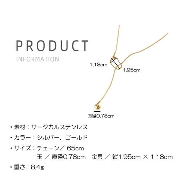 変色しにくい、変形しにくい、傷が付けにくい、 金属アレルギーに強いステンレスのネックレスです。 変形モチーフの中にボールパーツを通してつけるY字のラリエットネックレス。 位置は固定されていないのでお好きな位置でつけていただけます。 シンプルなデザインでY字デザインがスタイリッシュかつ上品な印象を与えてくれます。 |