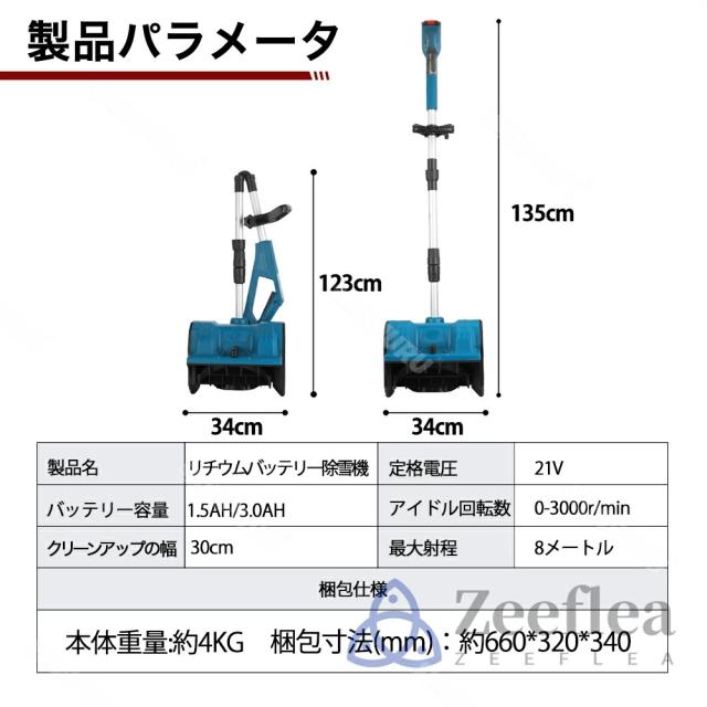 - 商品配送後、開封時、既にバッテリーが充電されており、すぐに動かすことができました。細かい雪も飛びますし、方向も変更できます。