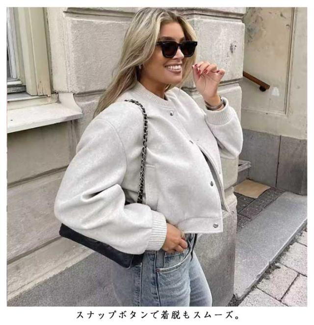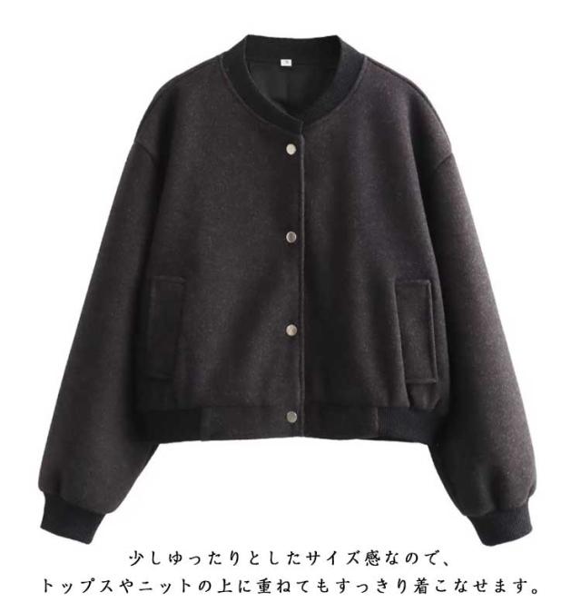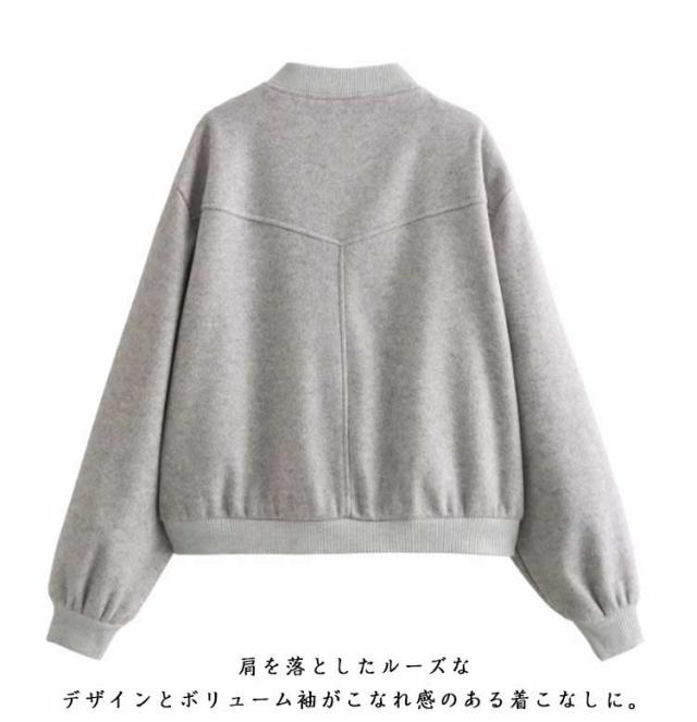 | シンプルなデザインなのでカジュアル過ぎず着ていただけます。 柔らかな素材使いと淡いカラーリングで女性らしく仕上げたスタジャン。 フェイクスウェード生地は柔らかくストレッチ性もあるので着心地抜群。 スナップボタンで着脱もスムーズ。 薄手なので季節の変わり目に活躍間違いなしの1枚! 肩を落としたルーズなデザインとボリューム袖がこなれ感のある着こなしに。 少しゆったりとしたサイズ感なので、トップスやニットの上に重ねてもすっきり着こなせます。 | |
