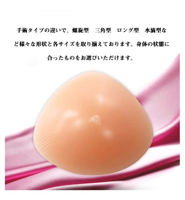 | 【乳がんパット+専用カバー+ブラパット】 安心、安全な医療用シリコン素材で、なめらかな肌触りと自然な弾力性、適度な重みで左右のバランスを整え身体の負担を軽減。裏側には凹みがあり、蒸れにくい設計。 脇から乳房にかけて自然な膨らみをもたせ違和感のない付け心地を目指した設計。 裏側にあえて凹みを作る事により、空気の流れをよくし長時間着用時の蒸れを軽減。 ポケット付き専用下着でなくとも、お持ちの通常のブラジャーで問題ございません。カバーは丸洗いできるから、いつも清潔に。 手術タイプの違いで、螺旋型 三角型 ロング型 水滴型など様々な形状と各サイズを取り揃えております。身体の状態に合ったものをお選びいただけます。 | |