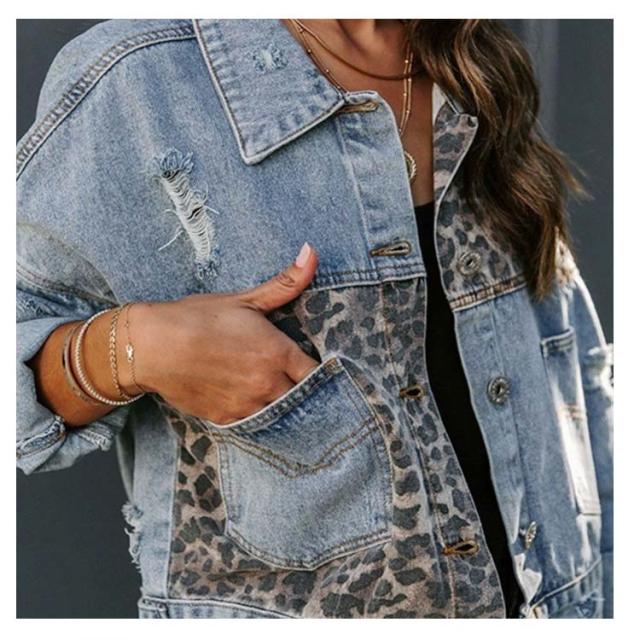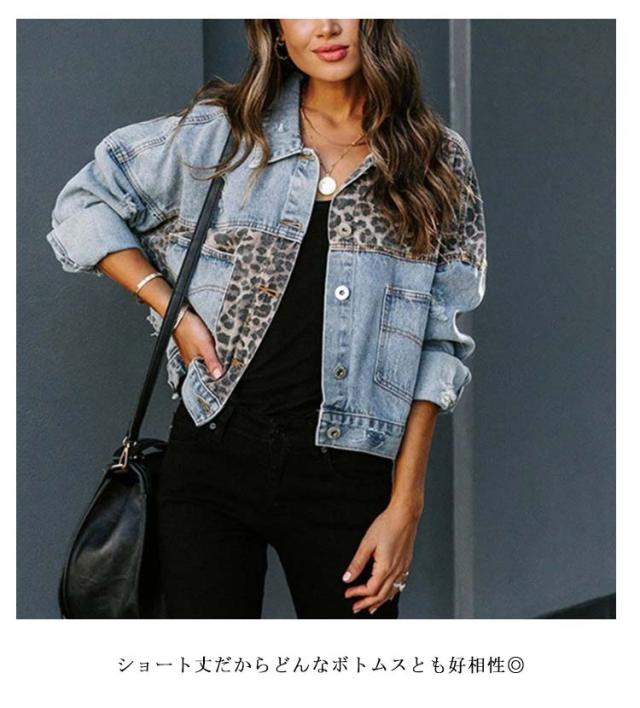 ジャケット デニムジャケット レディース ヒョウ柄 ショート丈 デニムジャケット 切り替え 長袖Gジャン 羽織り デニムジャケット 秋 アウター カジュアル 大きいサイズ デート お出かけ シンプル