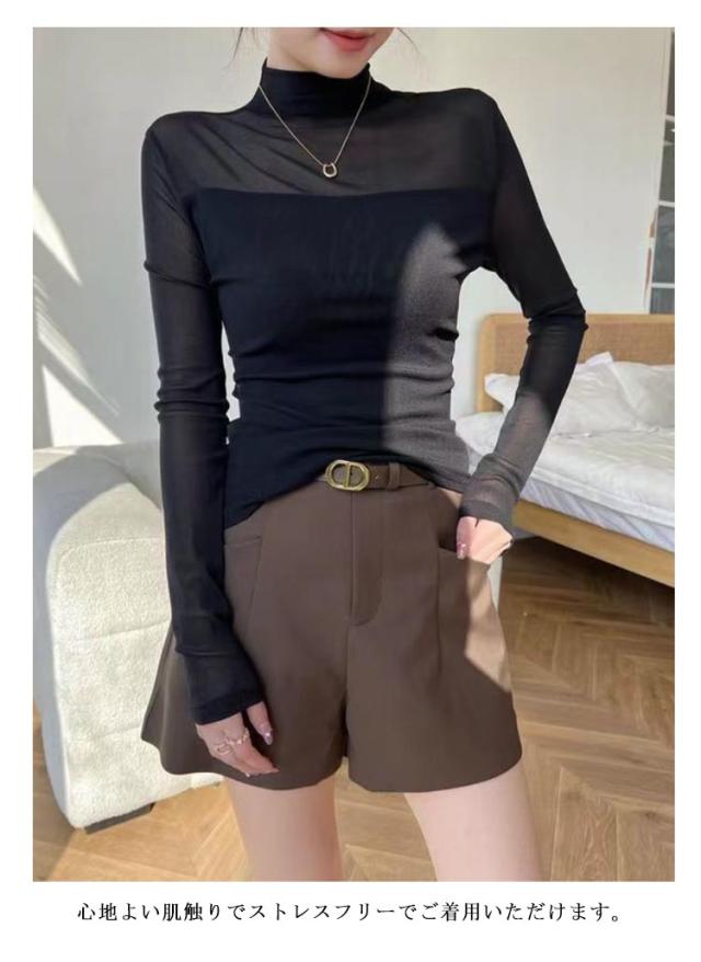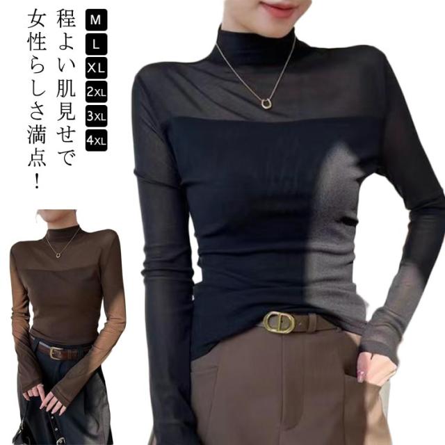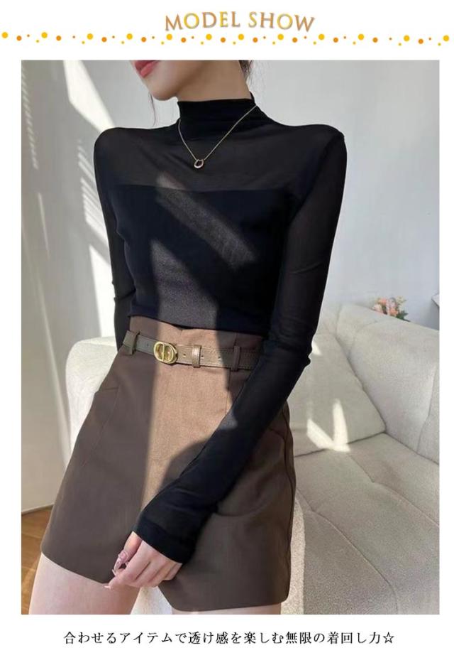 シアートップス インナー トップス シースルー 透け感 重ね着 レディース シースルー 秋 プルオーバー カットソー 薄手 長袖Tシャツ 肌見せ 大人可愛い 重ね着 着回し 普段着 オフィス 伸縮性