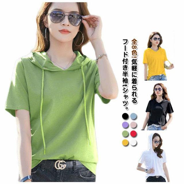 フード付き 全8色!フード付きtシャツ 全8色!フード付きtシャツ トップス パーカー 夏 カットソー tシャツ 半袖 シンプル 無地 20代