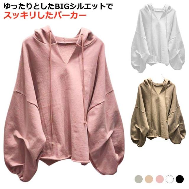 レディース おしゃれ 通勤 春 通学 フード付き オシャレ トップス プルオーバー tシャツ 春 送料無料 BIGシルエット 長袖 カジュアル 薄手