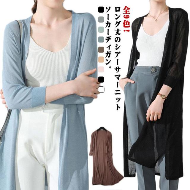 サマーカーディガン 日焼け止めカーディガン 羽織り カーディガン 薄手 夏 ロング丈 アイスシルク 冷感 レディース ニットソーカーディガン 涼しい
