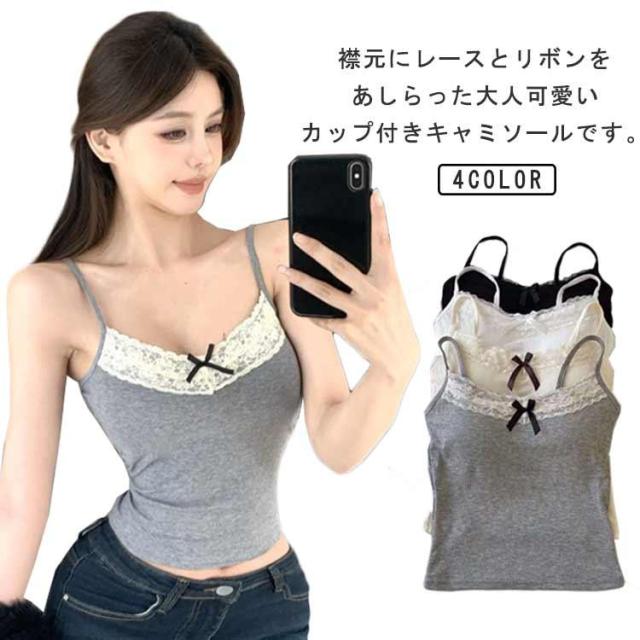 カップ付き レディース キャミソール キャミソール インナー リボン レース インナーキャミ ブラトップ カップ付きインナー ノンワイヤー インナーキ