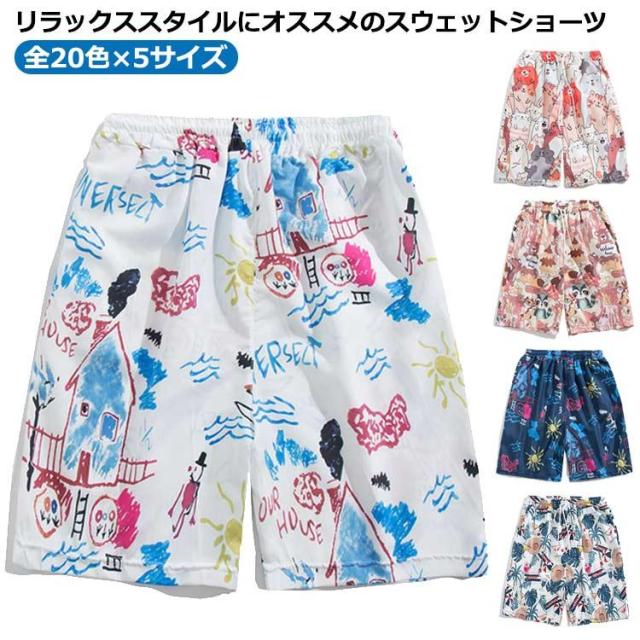 柄パンツ ショートパンツ 短め ハーフパンツ 柄パンツ 短パン ボトム ガラパンツ 速乾 メンズ 半ズボン ウエストゴム 夏 オシャレ ショートパンツ