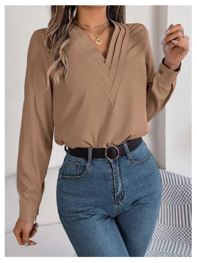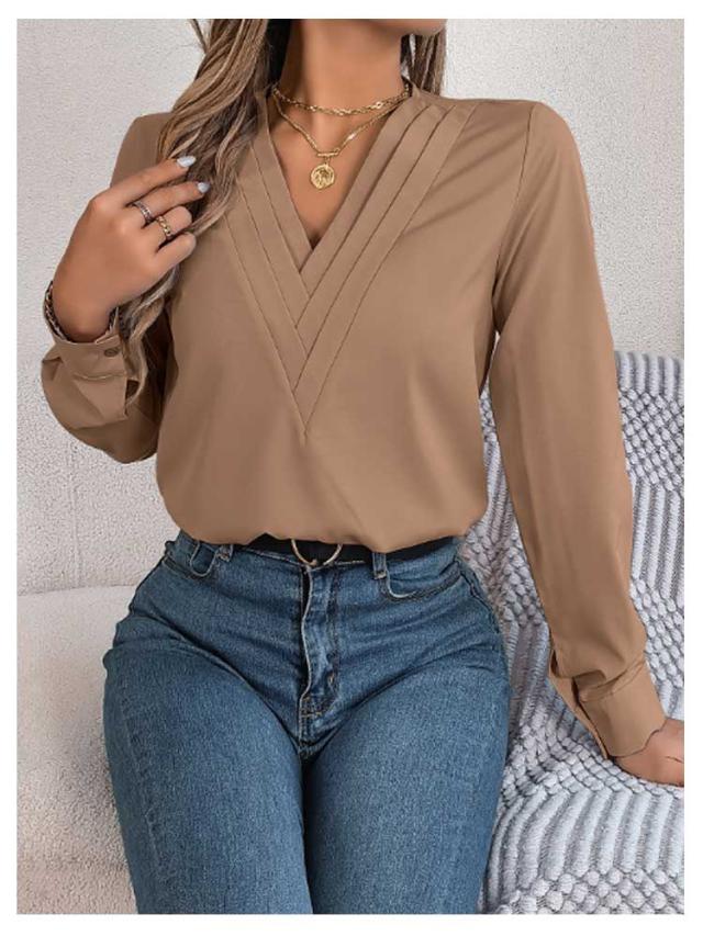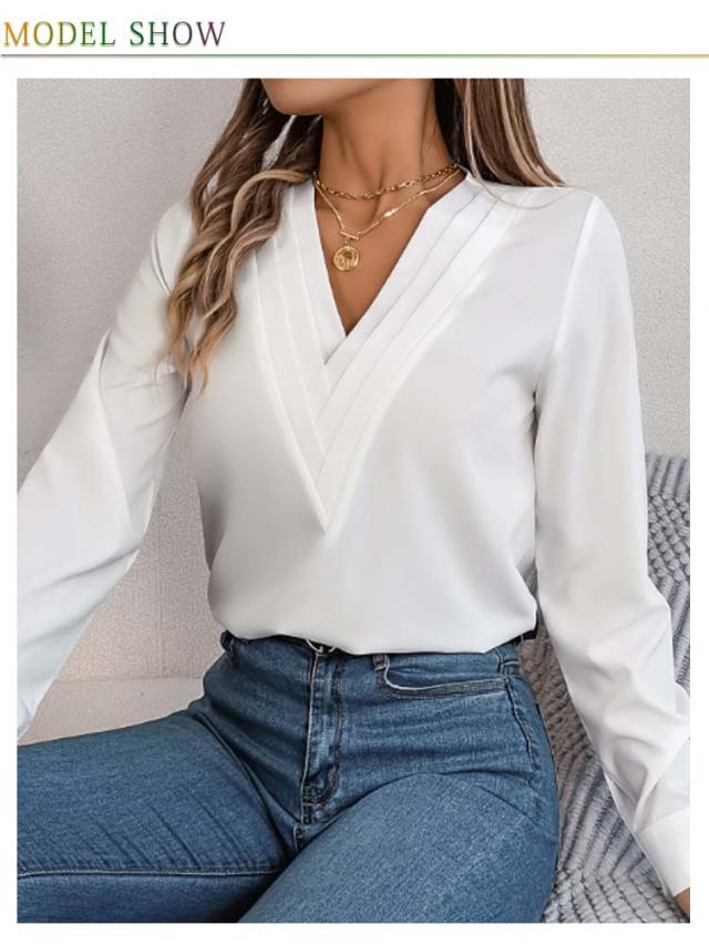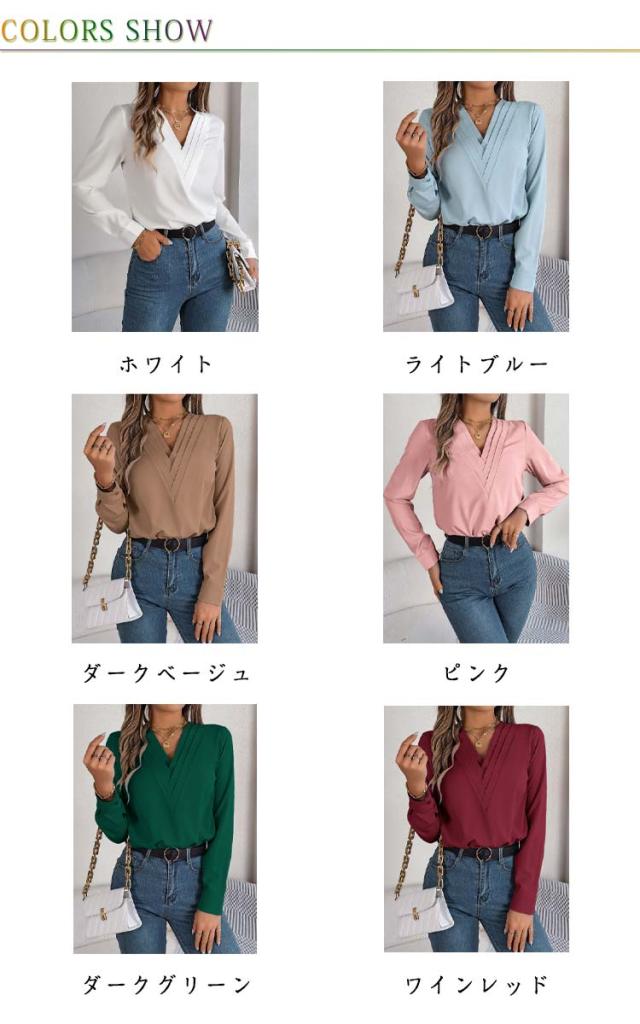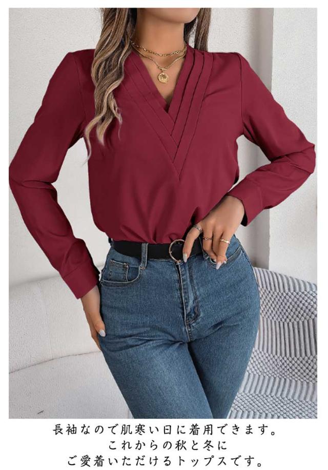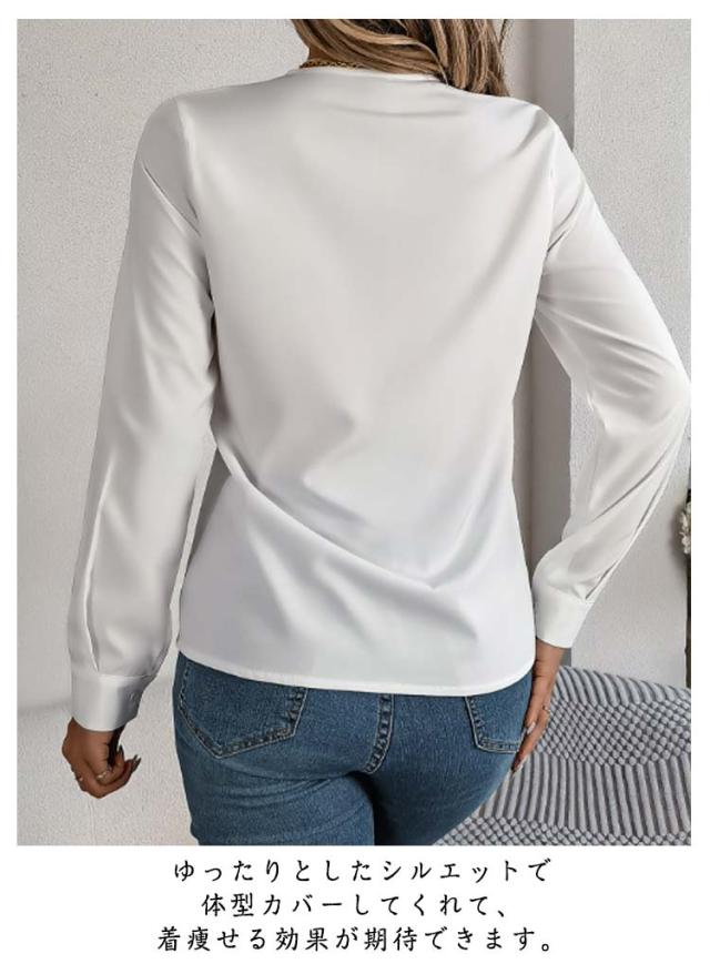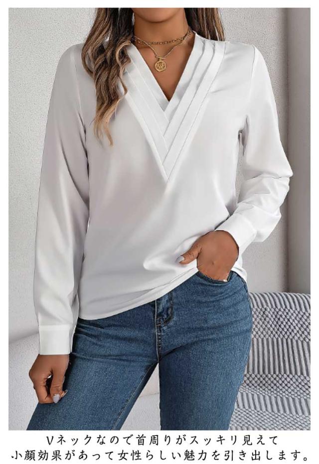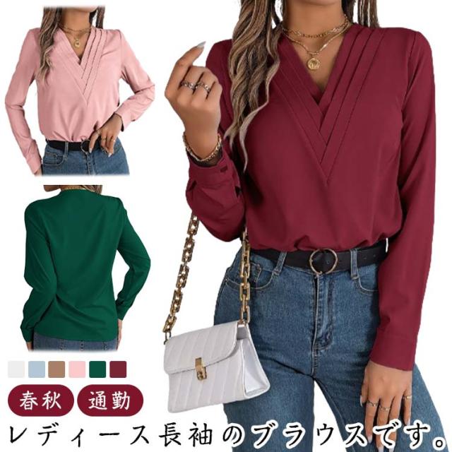 春秋 シャツブラウス レディース レディース 長袖シャツ トップス 無地シャツ Vネック ゆったり 大人 通勤 大きいサイズ 無地 スッキリ 着回し 体型カバー 日常 オフィス カジュアル 通勤 入園式 二次会 ビジネス