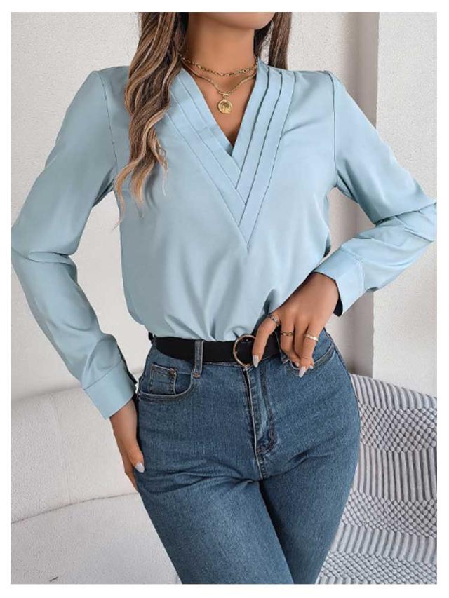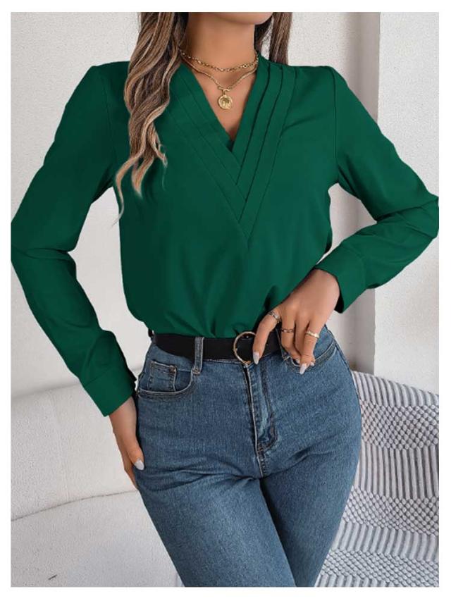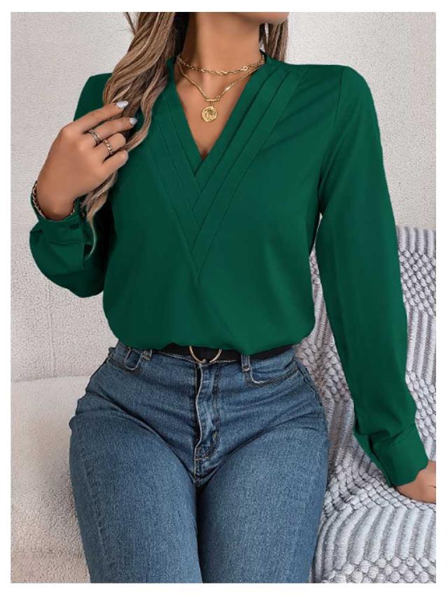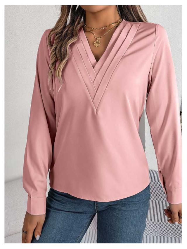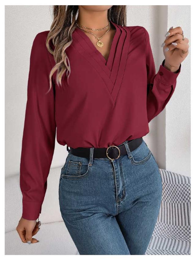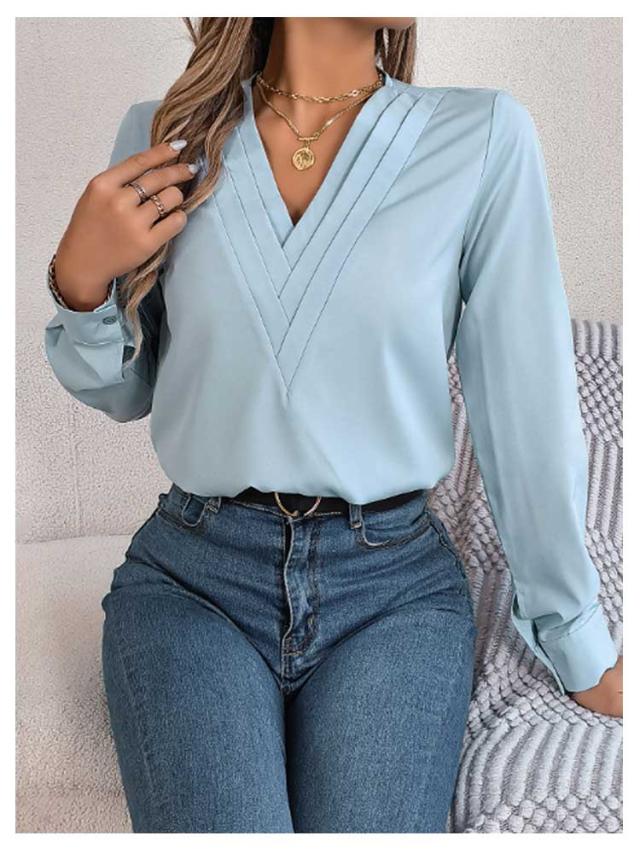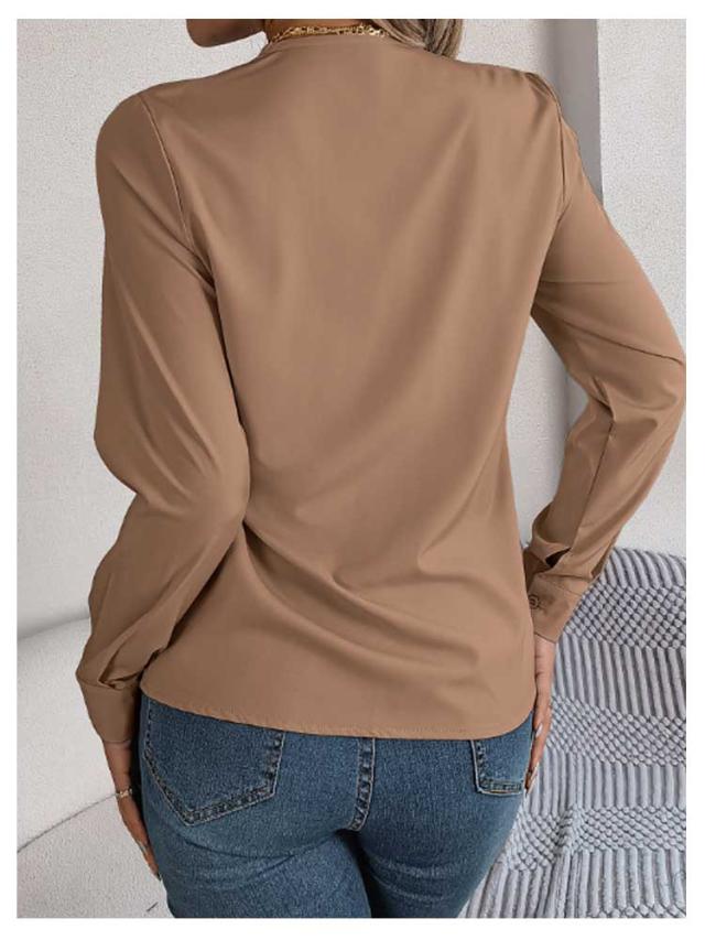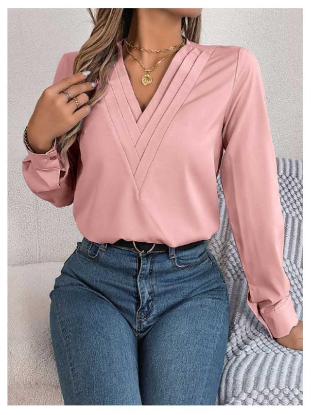 春秋 シャツブラウス レディース レディース 長袖シャツ トップス 無地シャツ Vネック ゆったり 大人 通勤 大きいサイズ 無地 スッキリ 着回し 体型カバー 日常 オフィス カジュアル 通勤 入園式 二次会 ビジネス