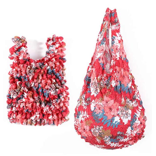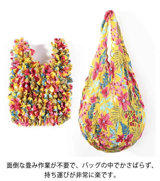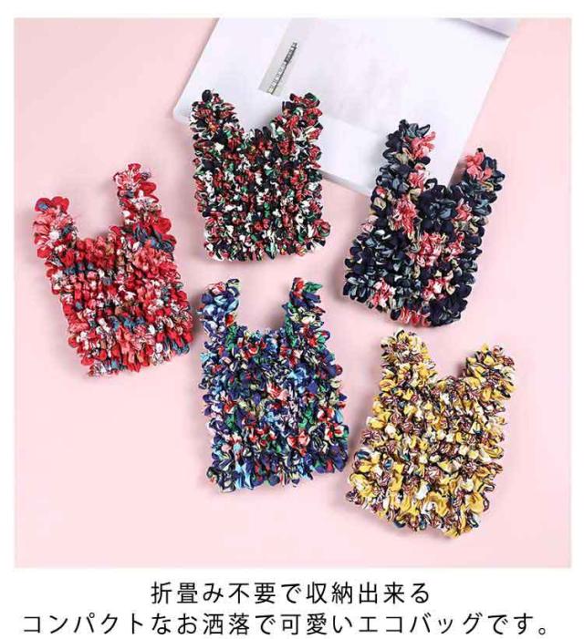 絞り コンパクト 花柄 大容量 レディース エコバッグ トートバッグ 伸びる 大容量 エコバッグ くしゅくしゅ レジ袋 伸縮性 荷物に合わせて お買い物バッグ 折り畳み不要 コンビニバッグ 洗濯可能 お洒落 可愛い