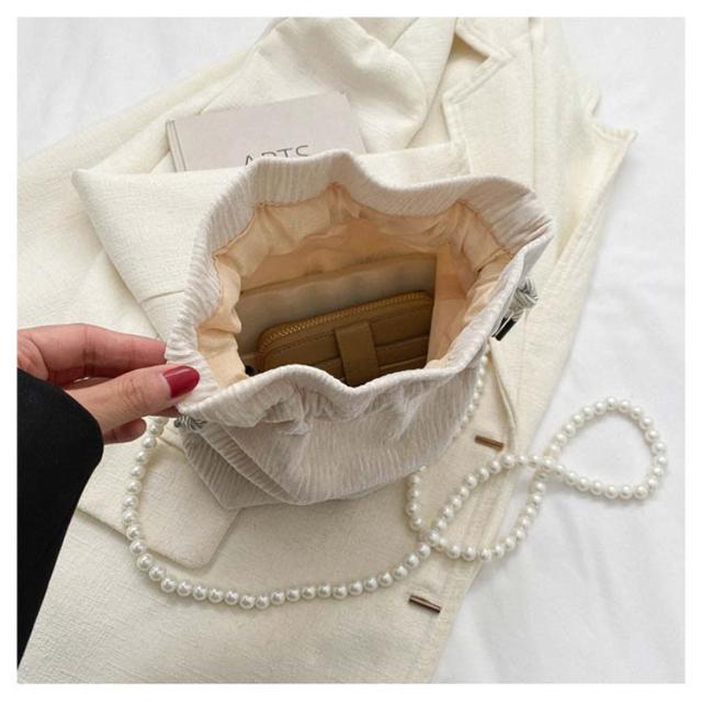 | 巾着夕ィプのデザインが特徴で、パールのような繊細なハンドルがエレガントな印象を与え、どんな装いにも洗練されたアクセントを加えます。 コンパクトな見た目ながら、普段持ち歩くものを十分に収納できるサイズ。 日常使いから特別な日まで幅広く活躍します。 小さな見た目で必需品が十分入るちょうどいいミニバッグです。 光沢のある生地がちらりと高見えテザイン。表面はジャガ一ド加工されており、高彼感をプラス。 | |