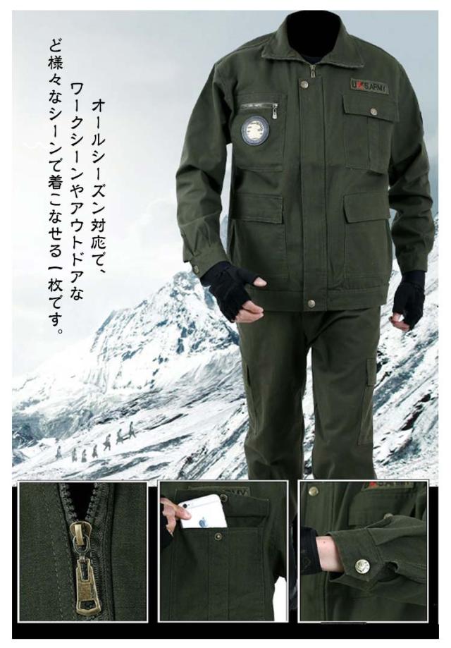 ロングパンツ ミリタリー ジャケット 機能性 ワークウェア 春 カーゴパンツ ワークマン 秋 メンズ 2点セット 作業着 長袖 上下セット 作業着 丈夫 耐磨耗 ユニフォーム 制電 車 自転車 ガーデニング 掃除 工場 工事 現場 作業服 大きいサイズ アウトドア カジュアル