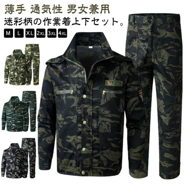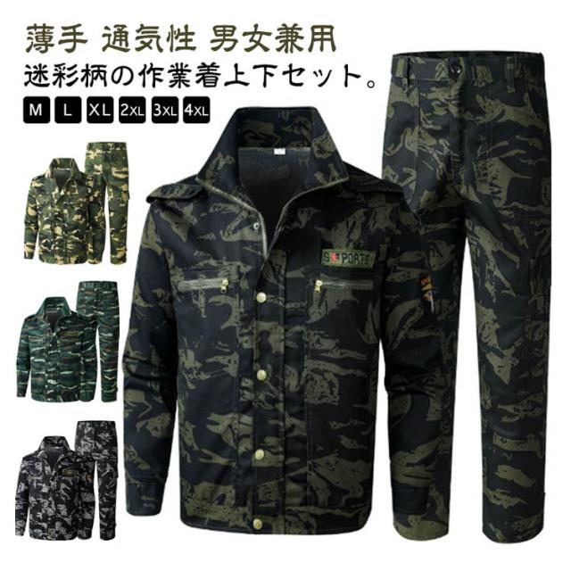 耐磨耗 迷彩柄 上下セット ロングパンツ カーゴパンツ ジャケット ワークウェア 2点セット カジュアル 制電 ユニフォーム メンズ 丈夫 ミリタリー 作業着 アメカジ おしゃれ マルチポケット 作業服 お仕事 薄手 通気性 男女兼用 春