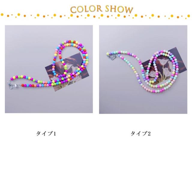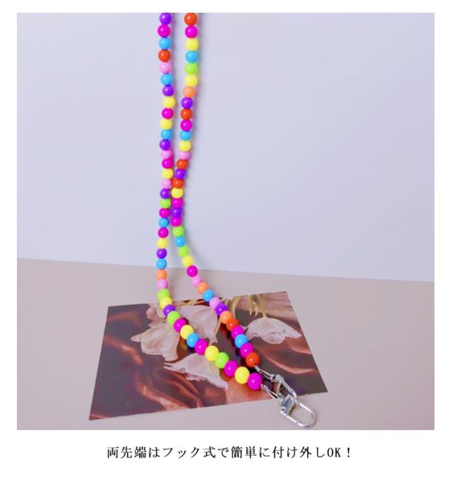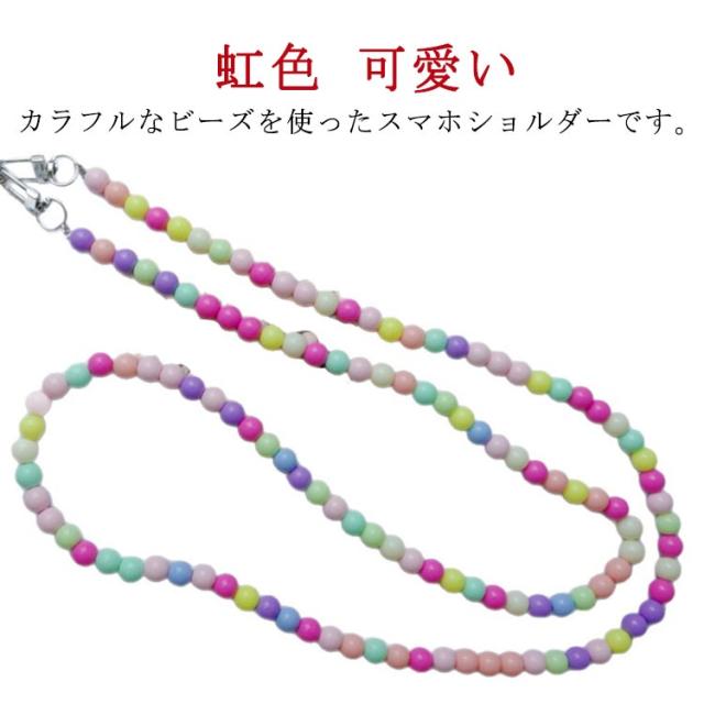 ロング 肩掛け 虹色 カラフル スマホショルダー ビーズ 携帯 斜めがけ 首掛け ストラップ スマホストラップ ビーズストラップ スマホ スマホショルダーストラップ ショルダーストラップ 挟むだけ 韓国風 大人 かわいい おしゃれ