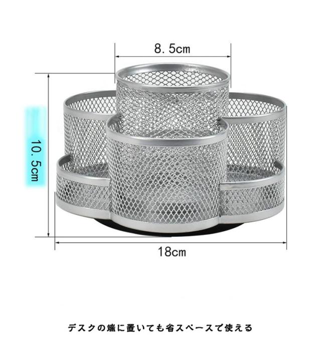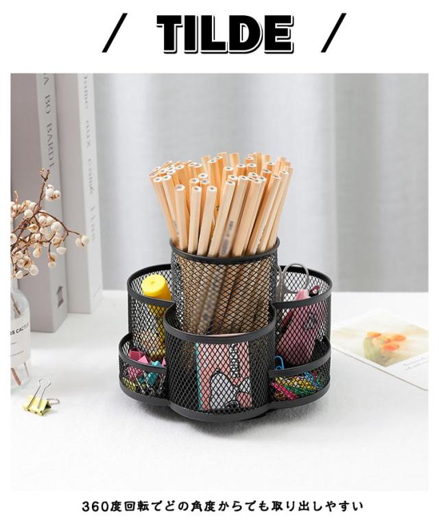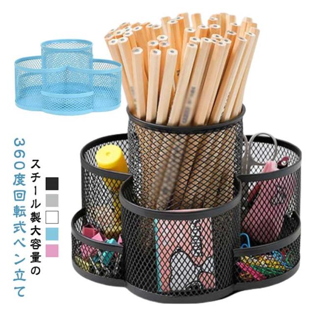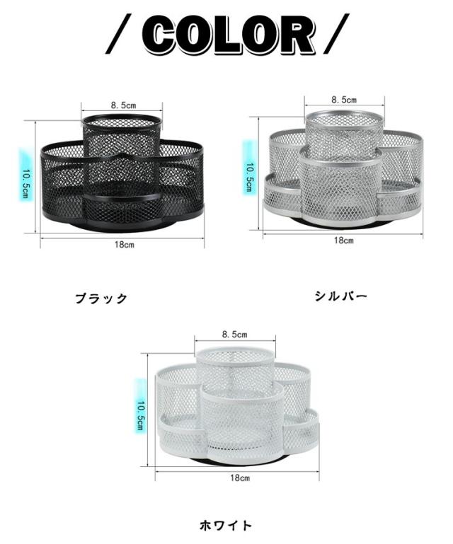 | スチール製大容量の360度回転式ペン立て。 360度回転でどの角度からでも取り出しやすい 7つのポケットでアイテムを分類収納可能 段違いデザインで小物も見やすく取り出しやすい デスクの端に置いても省スペースで使える オフィスや学校で複数人での使用にも便利 | |