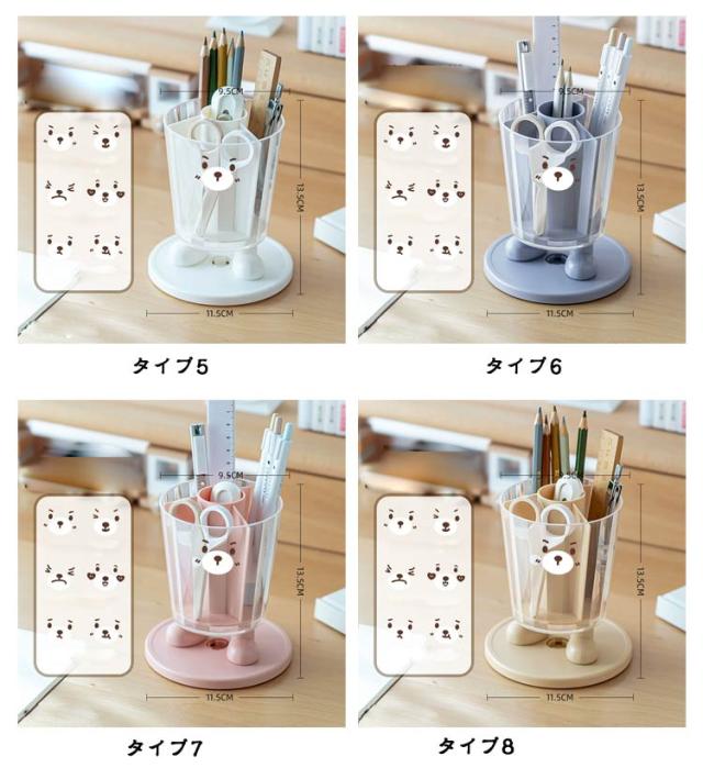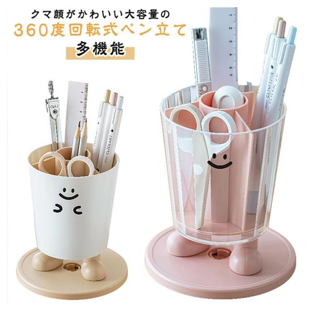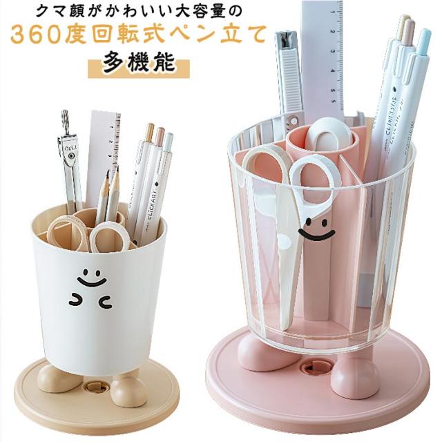 スリム 小さめ ペン立て ペンスタンド デスクオーガナイザー ペン入れ 卓上 クマ顔 おしゃれ かわいい 文房具収納 ペンホルダー 鉛筆立て 大容量 小物収納 収納ボックス 卓上収納 コンパクト 回転式 鉛筆 ペン
