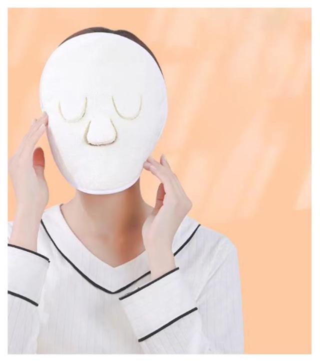 | ・繰り返し使えるフェイスタオルマスク ・温冷どちらでも使い分けて使用できる ・顔の形に合わせて作られたフェイスマスクで、鼻と目元が開いていて呼吸しやすいようになっています。 | |