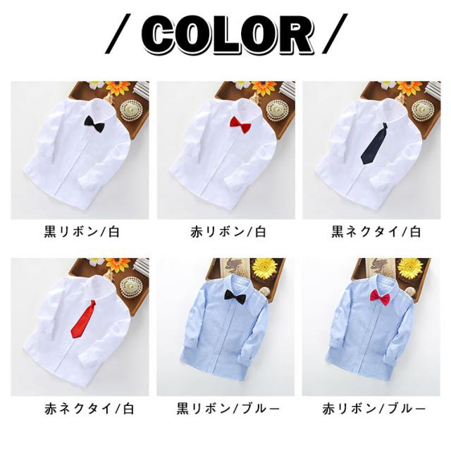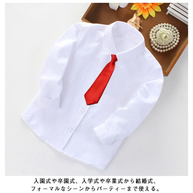 無地 ネクタイ付き シャツ 蝶ネクタイ付き 発表会 長袖 卒園式 ワイシャツ 入園式 制服 卒業式 結婚式 キッズ 七五三 フォーマルシャツ ホワイト 白 子供服 男の子 こども 子ども キッズ スクールシャツ カラーシャツ
