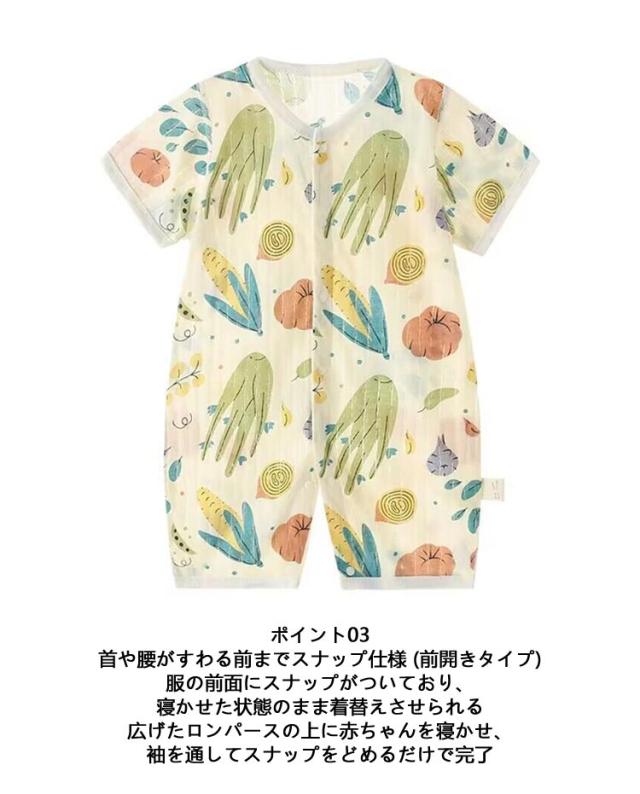 | 薄手 春・秋用 半袖/長袖 ロンパース サイズ:59-90cm 肌着としてはもちろん また暑い季節にはお出かけコーデとしても使える ●綿・コットン100% ●お着替え便利 ●通気性良い ●天然素材 ポイント01 コットン100%で肌当たりのやさしい 肌触りがとても気持ちのいい 着心地抜群なので敏感肌の赤ちゃんにも安心して着させる ポイント02 赤ちゃんが快適に過ごす 安全性に配慮するためにも 縫い目やタグは外側についた薄くて敏感な赤ちゃんの肌を傷つけるのを防ぐ 縫い目か平でブロつかないフラット縫製 チクチクしない ポイント03 首や腰がすわる前までスナップ仕様 (前開きタイプ) 服の前面にスナップがついており、寝かせた状態のまま着替えさせられる 広げたロンパースの上に赤ちゃんを寝かせ、袖を通してスナップをどめるだけで完了 | |