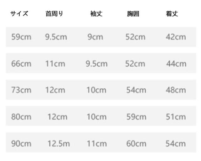 | サイズについての説明 | 59:目安身長52-59cm お勧め体重3-6.9kg 66:目安身長60-68cm お勧め体重6.9-8.9kg 73:目安身長66-73cm お勧め体重7.2-9kg 80:目安身長73-80cm お勧め体重8.5-10kg 90:目安身長78-90cm お勧め体重9.5-13kg ※上記サイズは平置き実寸になります。 サイズ表の実寸法は商品によって1-3cm程度の誤差がある場合がございます。(単位:cm) |