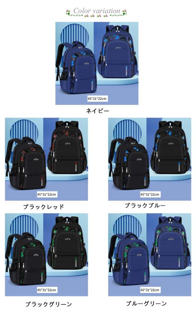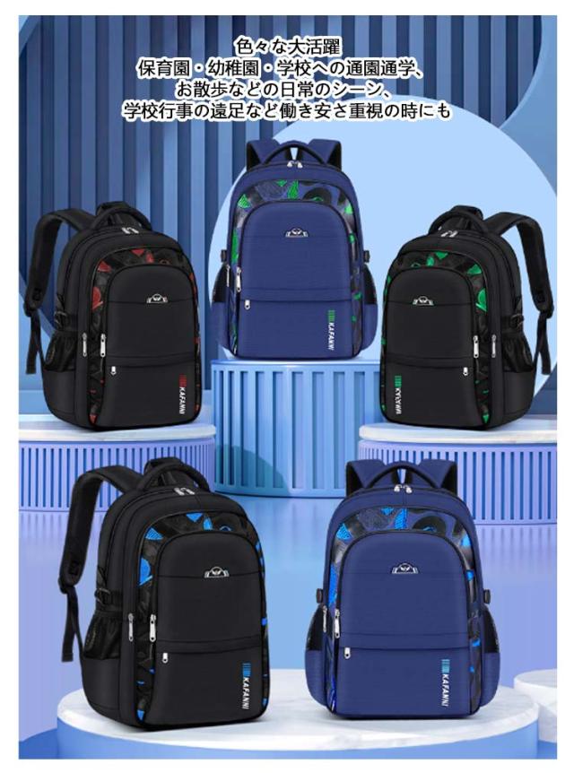 | キッズリュック 45*31*22cm 小学生のお子様向けリュックですが、 トラッドなデザインが特徴的で塾や習い事でのご利用におすすめです。 色々な大活躍 保育園・幼稚園・学校への通園通学、 お散歩などの日常のシーン、学校行事の遠足など働き安さ重視の時にも 600g 約2個リンゴの重量 通学のための軽量のリュックサックですので、中学生から幼稚園のキッズまで背負いやすいです。 大容量 たくさんのポケットがあり、文房具を分類に収納でき、とても便利です。 | |