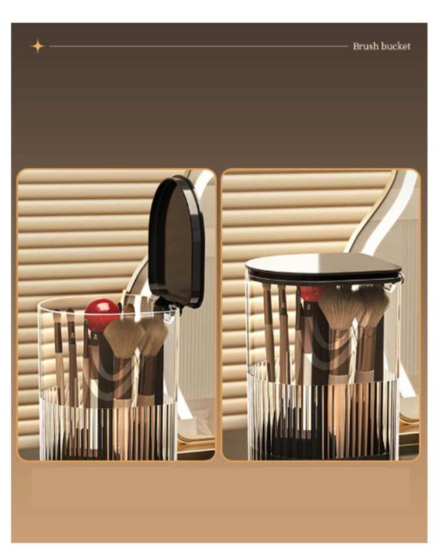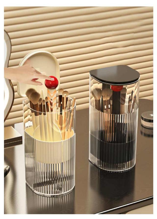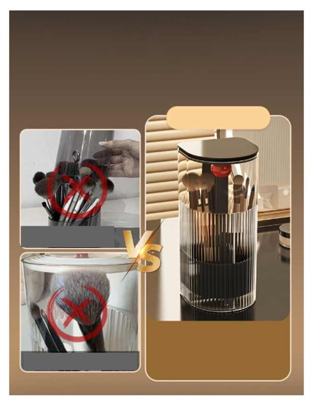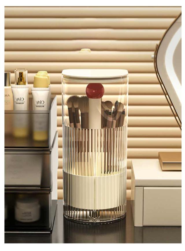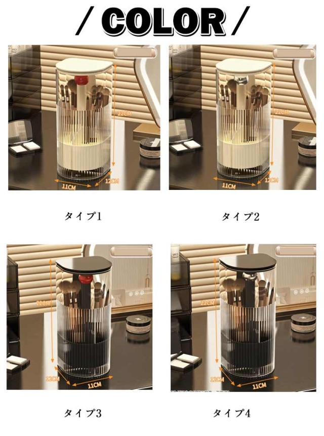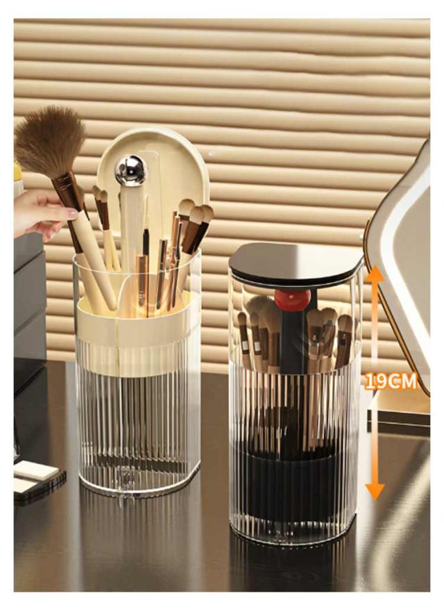 | ワンタッチで開閉可能のメイクブラシスタンド。 ふた付きだから、ほこりがつきません。 異なる長さのブラシを綺麗に収納できます。 仕切りがついているので仕分け・整理もバッチリ。 ゴムパッド付きだからドレッサーや机を傷つけません。滑り止め効果も◎! メイクブラシ収納ケースだけでなくペン立てとしても使えます。 | |