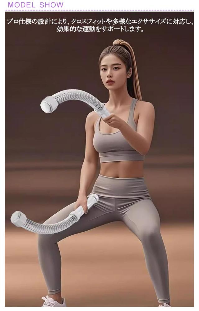 | 屋内外でのトレーニングに最適なフィットネスバー「ロープレス バトルロープ」 プロ仕様の設計により、クロスフィットや多様なエクササイズに対応し、効果的な運動をサポートします。 ロープを使用せずに、同様の効果を得られるため、スペースを取らずに使用可能です。 2セットで提供されるため、バランスの取れたトレーニングが可能です。 持ち運びも簡単で、どこでもフィットネスを楽しめます。 | |