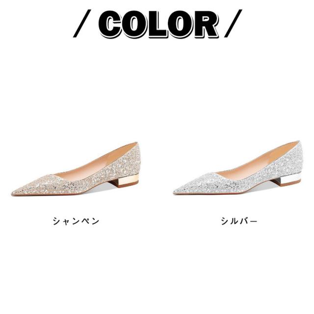 歩きやすい ラメ グリッター ぺたんこ パンプス 美脚 靴 結婚式 ポインテッドトゥ レディース パンプス キラキラ 痛くない 甲浅 披露宴 パーティー おしゃれ 大きいサイズ かわいい 大人 女性 発表会 シューズ 謝恩会 お呼ばれ 華やか 履きやすい