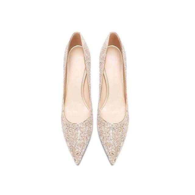 | グリッターラメポインテッドトゥフラットパンプス グリッターラメがキラキラ華やかに輝くハイヒール シャープなとんがりトゥは上品で華奢な印象に! 足指がのぞく浅えぐりのデザインとエレガンスなシルエットで大人っぽく女らしい、大人な雰囲気を格上げしてくれるハイヒールです。 結婚式やお呼ばれやパーティーなど、華やかな場面にぴったりの1足です♪ | |