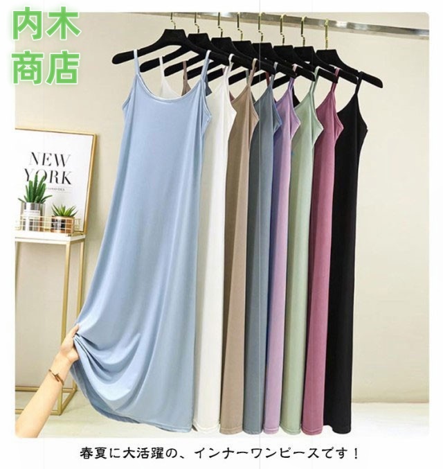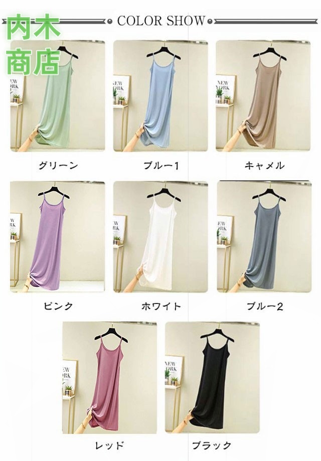 ペチコート インナーワンピース 速乾 透け防止 スリップ レディース サラサラ 全8色 ロング ノースリーブ シンプル キャミソールワンピース 夏 薄手 無地 蒸れない ルームウェア 選べる着丈 マキシ丈 ストレッチ