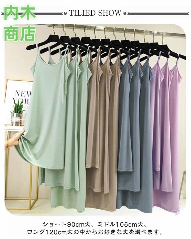 | 【選べる着丈】【インナーワンピース】【全8色】 春夏に大活躍の、インナーワンピースです! ショート90cm丈、ミドル105cm丈、ロング120cm丈の中からお好きな丈を選べます。 涼しげで軽やかな着心地のキャミソールワンピース。 リラックスタイムにもオススメ! モダールコットンの素材なので柔らかな肌ざわりが心地よく、よく伸びます。 キャミソールは、ドレスや白ワンピースとも好相性。 | |