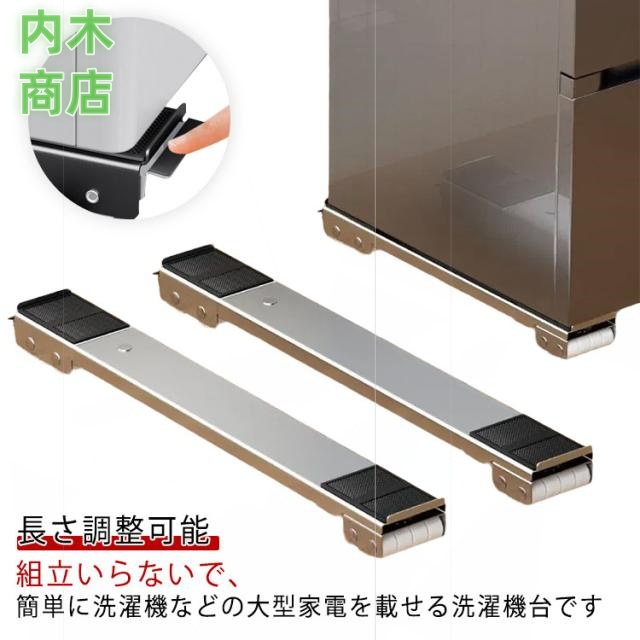 キャスター付き 台 簡易式 ドラム式対応 洗濯機パン グレー 長さ調整可能 冷蔵庫置き台 ドラム式洗濯機 移動できる 洗濯機置き台 伸縮式 ラック ブラケット ブラック 滑り止め 洗濯機台 冷蔵庫 ランドリーラック スライド 洗濯機