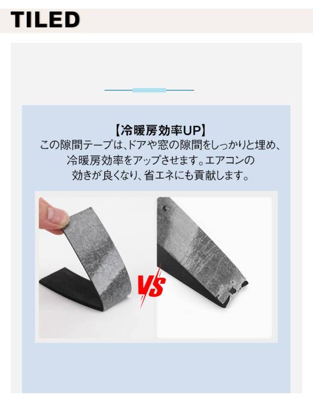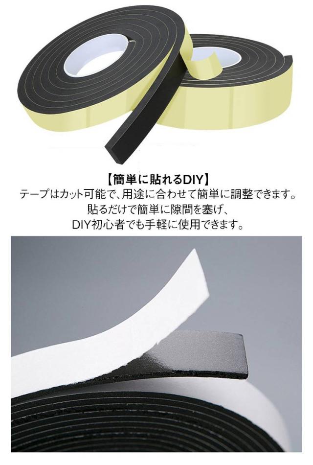| 簡単DIY!冷暖房効率UP&防音効果 隙間テープ サイズ選べる 【冷暖房効率UP】 この隙間テープは、ドアや窓の隙間をしっかりと埋め、冷暖房効率をアップさせます。エアコンの効きが良くなり、省エネにも貢献します。 【防音・防風対策】 防音効果があり、すきま風を防ぐだけでなく、外の音も軽減します。静かな環境を作りたい方にぴったりです。 【多機能なスポンジテープ】 防水性、防虫性に優れており、湿気や虫の侵入を防ぎます。花粉の侵入も抑え、アレルギー対策にも効果的です。 【簡単に貼れるDIY】 テープはカット可能で、用途に合わせて簡単に調整できます。貼るだけで簡単に隙間を塞げ、DIY初心者でも手軽に使用できます。 【多用途で使える】 引き戸、窓、扉、玄関など、家庭やオフィスのさまざまな隙間をしっかりと防止。普段の生活に欠かせないアイテムです。 | |