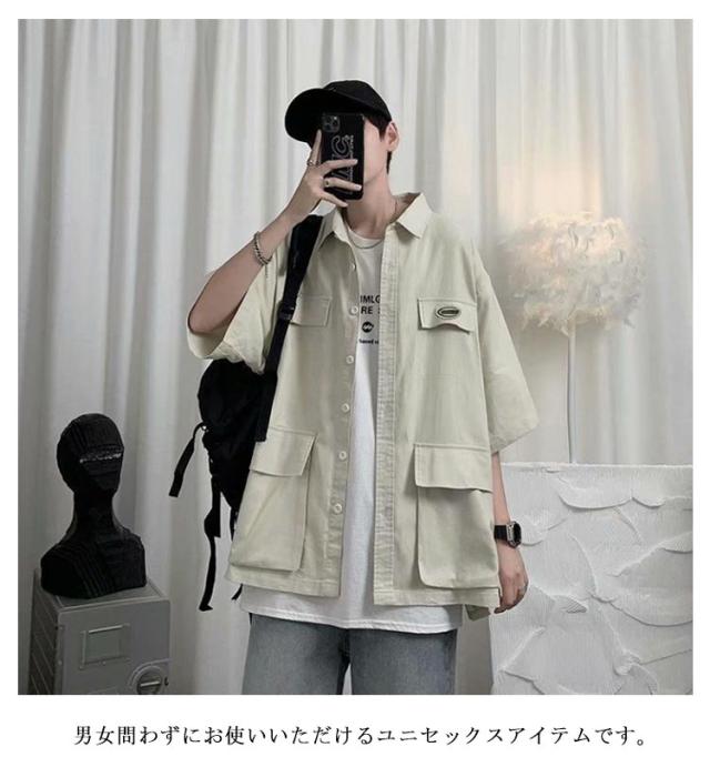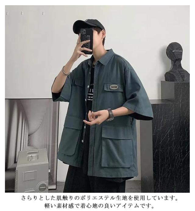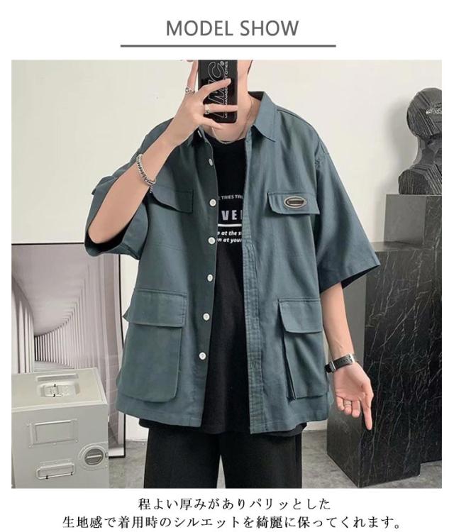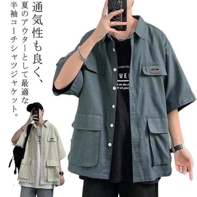 ミリタリージャケット サマージャケット コーチジャケット 半袖 メンズ カジュアルシャツ コーチジャケット シャツジャケット オーバーサイズ ミリタリーシャツ 春 秋 夏 アウター 羽織り カジュアルシャツ ビッグシルエット